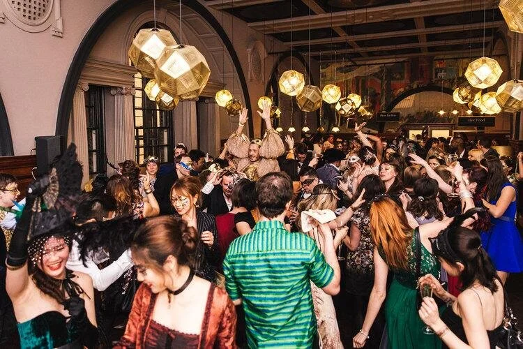 Dancing crowd at the Royal Academy of Arts event curated and performed by Nico and MWF artists for the Venetian Ball.